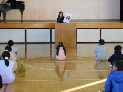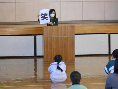 校長先生からは、「一年の計は元旦にあり」ということで、一年の初めに目標を立て、計画的に努力することが大切というお話がありました。また、恒例となっている年男・年女(5年生)による今年一年頑張りたいことを表した漢字の発表がありました。今年は、「仲」「協」「挑」「楽」「努」の5文字でした。それぞれ、青柳小学校との統合を意識して文字を選んでいました。4月から青柳小で頑張りたいという一人一人の気持ちが伝わってきました。